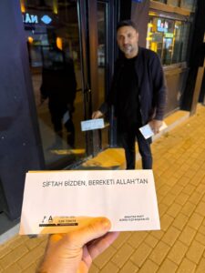 A Parti Gürsu İlçe Başkanı Süleyman Ağırman ve ilçe teşkilatı tarafından zor günler geçiren esnafa anlamlı bir dayanışma örneği sergilendi. Akşam saatlerinde dükkanını kapatıp evine giden esnafların kapısının altından, üzerinde “Siftah bizden, bereketi Allah’tan” yazılı zarflar bırakın Ağırman ve teşkilatı, eşine az rastlanır bir programa imza atmış oldu.