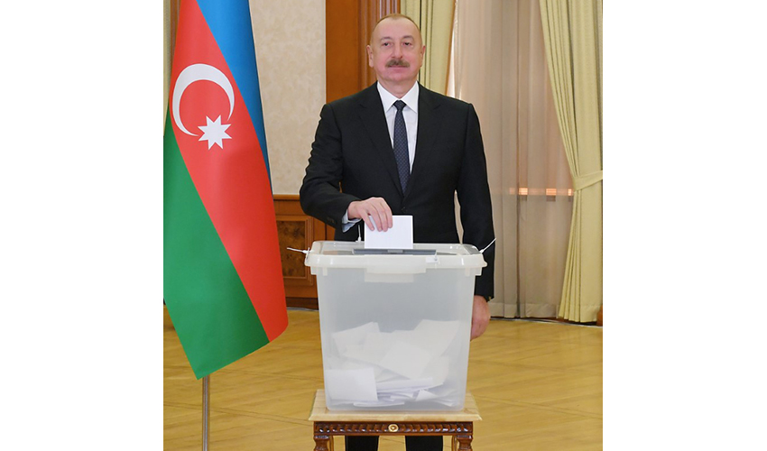 Azerbaycan’da halk, erken cumhurbaşkanlığı seçimi için sandık başında. Azerbaycan’ı 7 yıl yönetecek yeni cumhurbaşkanının belli olacağı seçimde oy verme işlemi yerel saatle 08.00’de başladı. Azerbaycan Cumhurbaşkanı İlham Aliyev, eşi ve Cumhurbaşkanı Birinci Yardımcısı Mehriban Aliyeva, çocukları Leyla Aliyeva, Arzu Aliyeva, oğlu Haydar Aliyev ve gelini ile işgalden kurtarılan Hankendi’deki 125 numaralı seçim merkezine gelerek oyunu kullandı.