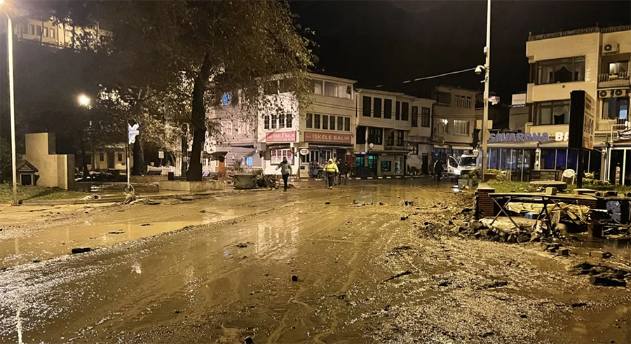Tirilye Mahallesi’nde bulunan dereler sokaklara taştı. İhbar üzerine bölgeye çok sayıda itfaiye, arama kurtarma, jandarma ekibi sevk edildi. Bölgeye gelen kepçe ve ekskavatörler çalışmalarını sürdürürken, Mudanya Belediye Başkanı Hayri Türkyılmaz ise selin yaşandığı bölgede incelemelerde bulundu.