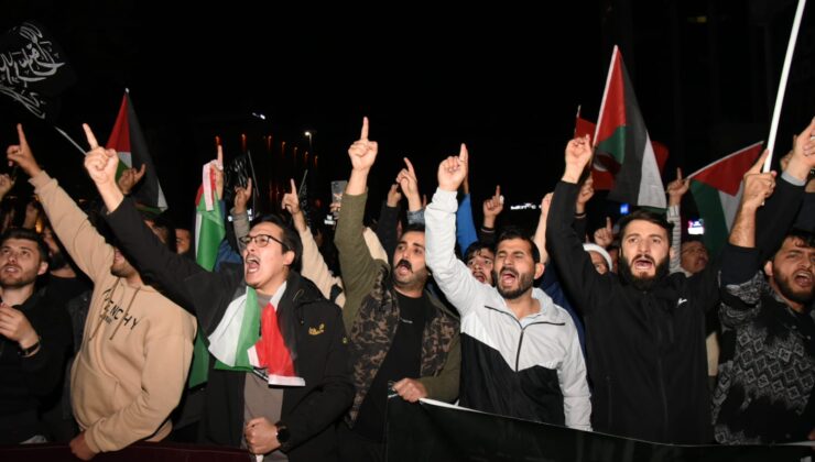 İsrail’in Gazze’de bir hastaneyi bombalaması ve sivil katliama neden olmasından sonra Bursalılar 15 Temmuz Demokrasi Meydanı’nda toplanarak İsrail’e lanet yağdırdı.