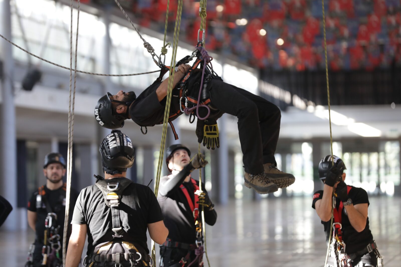 Bursa Büyükşehir Belediyesi, afetlere dirençli kent vizyonu doğrultusunda, BAM başta olmak üzere tüm ilgili birimlerin eğitim ve hazırlık faaliyetlerini aralıksız sürdürmeye devam ediyor. Merinos Yerleşkesi Fuaye Alanı’nda ‘İple Kurtarma Sistemleri ve Arama-Kurtarma eğitimi’ alan ekipler, uzman eğitmenler eşliğinde tavana asılı halatlara güvenlik ekipmanlarını kullanarak tırmandı.