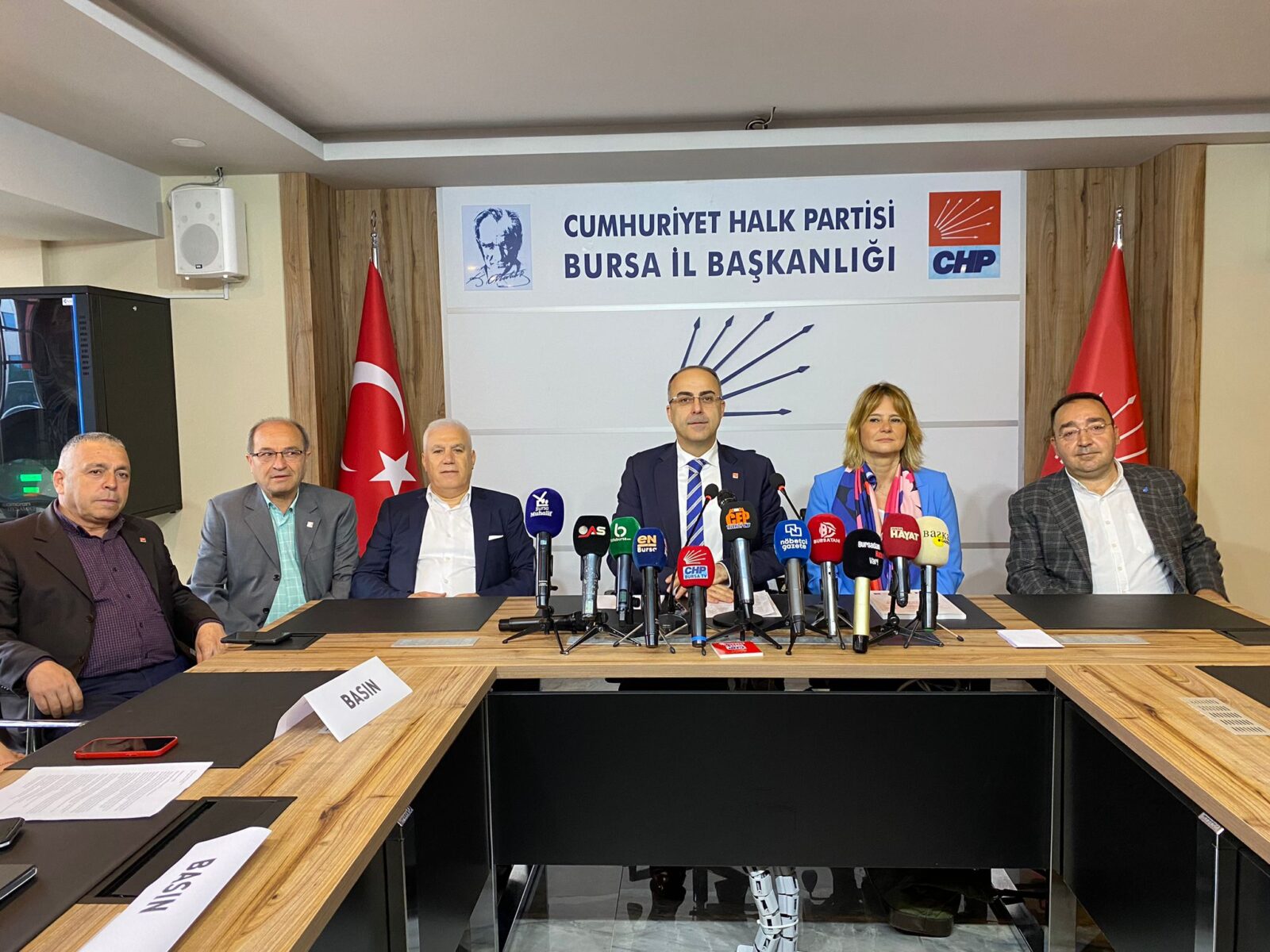 CHP Bursa İl Başkanlığı’nda düzenlenen basın toplantısına CHP Bursa Büyükşehir Belediye Başkan Adayı Mustafa Bozbey, DEVA Partisi Genel Başkan Yardımcısı Sanem Oktar, DEVA Partisi Bursa Temsilcileri ve çok sayıda basın mensubu katıldı.