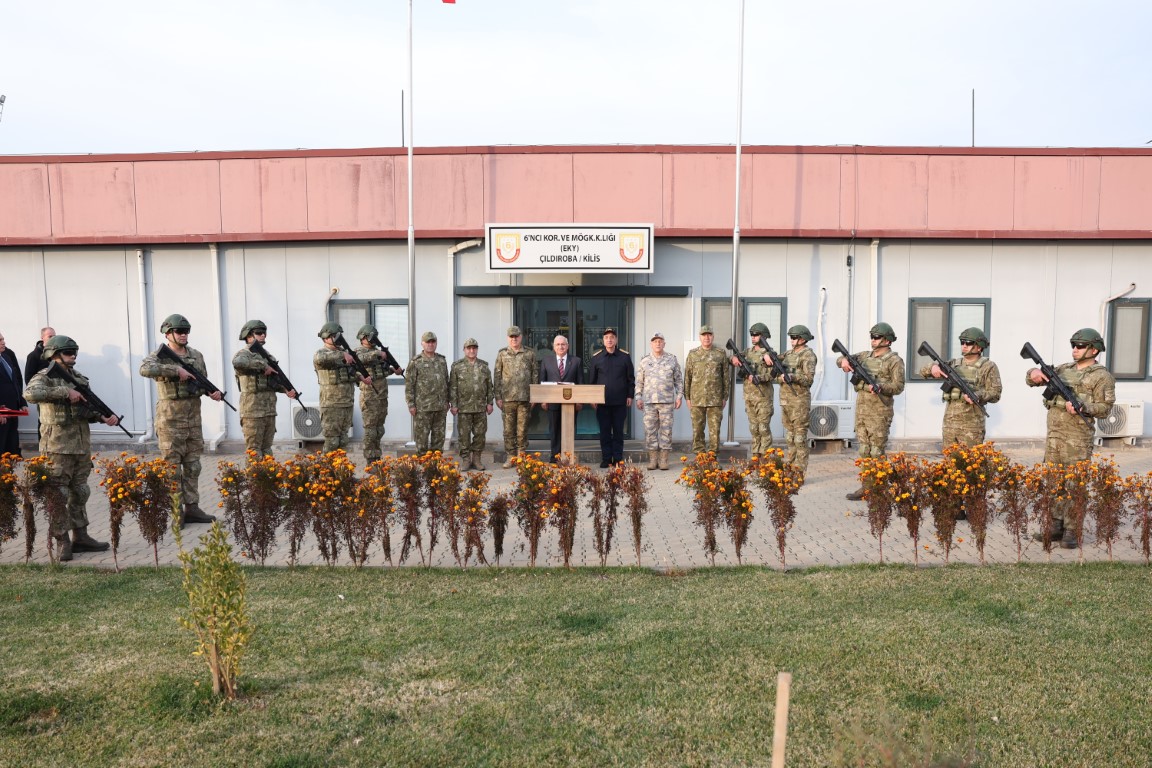 Milli Savunma Bakanı Yaşar Güler, 10’uncu Tanker Üs Komutanlığı ile TCG GÖKOVA’ya gerçekleştirdiği ziyaretlerin ardından son olarak Kilis Çıldıroba’ya gitti. 6’ncı Kolordu Komutanlığını ve Müşterek Özel Görev Kuvvet Komutanlığını ziyaret eden Bakan Güler, beraberindeki TSK komuta kademesi ile Mehmetçiklerin yeni yılını kutladı. Cumhurbaşkanı Recep Tayyip Erdoğan da telefonla bölgede görev yapan Mehmetçiklere seslenerek, yeni yıllarını kutladı. Cumhurbaşkanı Erdoğan, “Suriye sınırlarındaki bu mücadelede aldığımız neticeler, oralarda verdikleri kahramanca mücadele her an bizim için nedenli güvende olduğumuzun işaretidir. Öncelikle şehitlerimize Allah’tan rahmet diliyorum, gazilerimize şifalar temenni ediyorum. 2023 yılını nasıl geride bıraktığımızı, bırakmakta olduğumuzu herhâlde anlatmaya gerek yok. Ama umuyorum ki bundan sonraki süreçte biz kahramanlarımızla birlikte güvendeyiz, güvenlikteyiz ve bu şekilde de yolumuza Allah’ın izniyle devam edeceğiz. Ben bütün er, erbaş, bütün komutanlarımızın gözlerinden öpüyorum ve 2024’ün de hayırlara vesile olmasını Allah’tan diliyorum. Sizlere selam, sevgi, saygılarımı gönderiyorum” dedi.