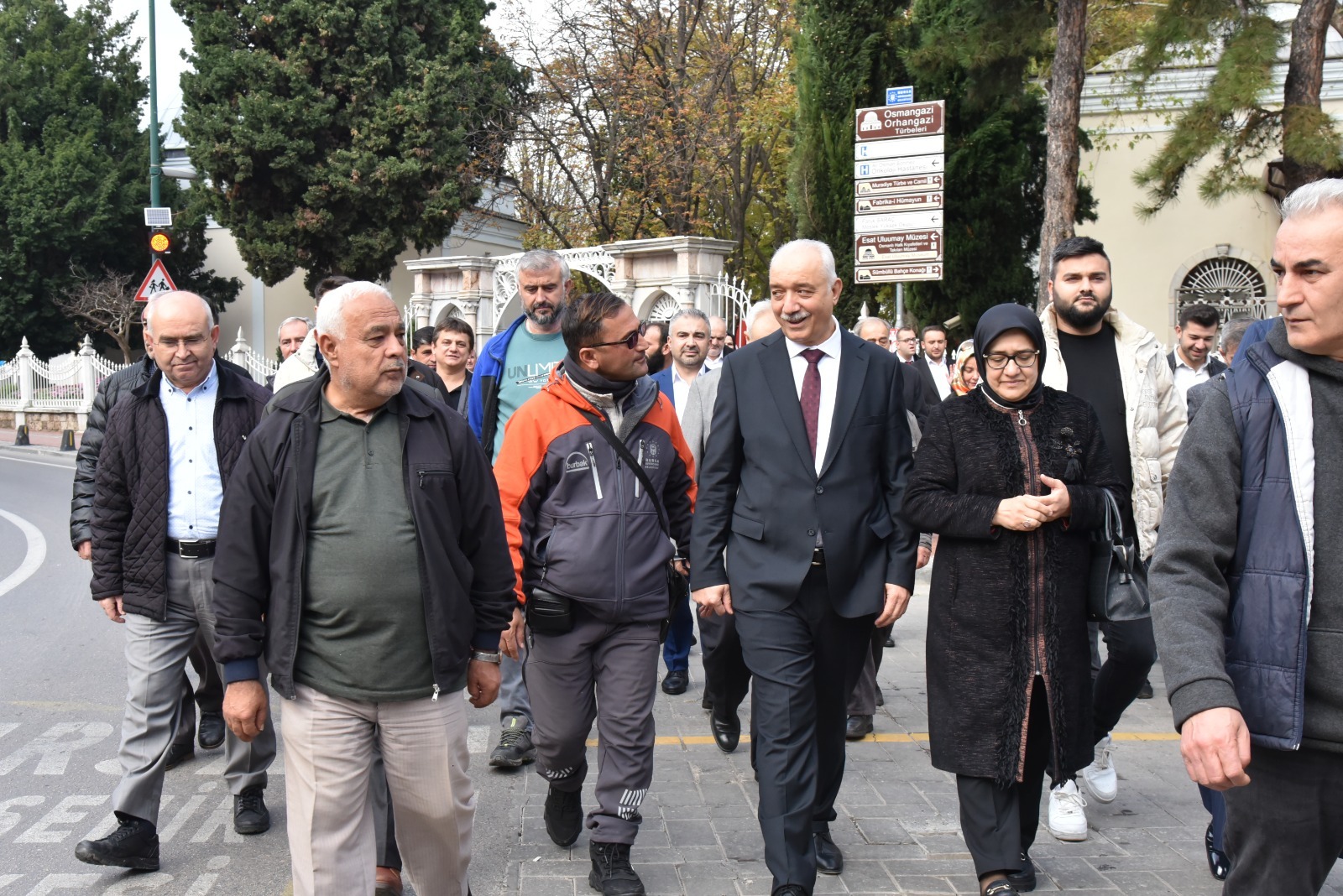 Burada öğle namazını kılan Tatlıoğlu ve beraberindeki yaklaşık 200 kişi Osmanlı Devleti kurucusu Osman Gazi’nin Tophane’deki türbesini ziyaret ederek, dua etti. Heyet Tophane’den AK Parti Osmangazi İlçe Başkanlığı’nın bulunduğu Şehreküstü’ne yürüdü.