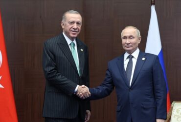 Cumhurbaşkanı Recep Tayyip Erdoğan, Rusya Devlet Başkanı Vladimir Putin ile bir ...