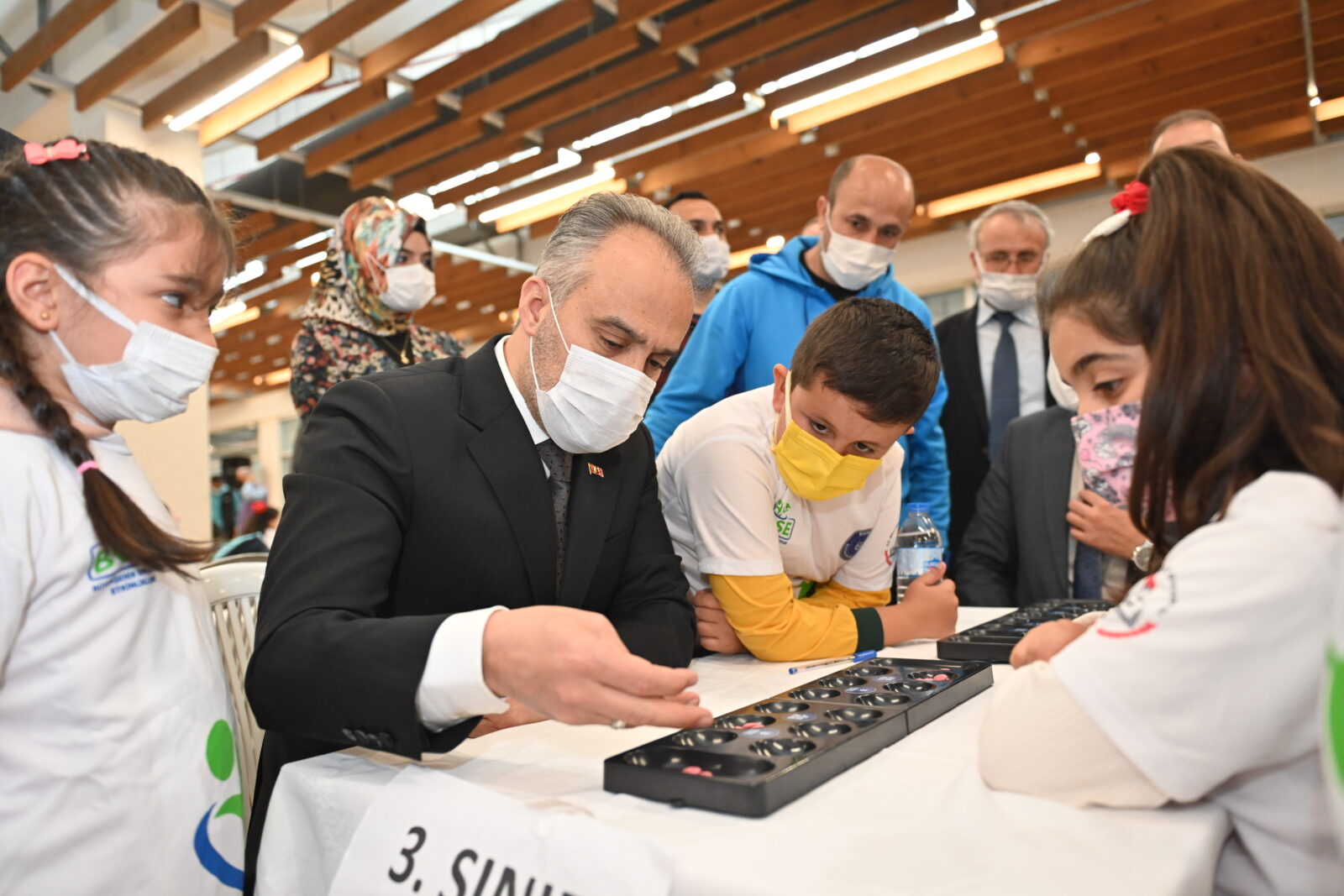 BURSA – Bursa Büyükşehir Belediyesi’nin il Milli Eğitim Müdürlüğü işbirliğinde düzenlediği Büyükşehir Okul Sporları Etkinlikleri (BOSE) kapsamında gerçekleştirilen ‘Büyükşehir Mangala İl Şampiyonası” finali coşkulu bir katılımla yapıldı. Ödül törenine katılan Büyükşehir Belediye Başkanı Alinur Aktaş, finalist öğrencilerle mangala oynadı.