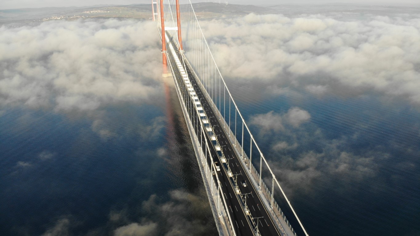 2023 metre ile dünyanın en uzun orta açıklığa sahip asma köprüsü olan 1915 Çanakkale Köprüsü’nün sis bulutu altındaki hali ise dron ile görüntülendi. Sis bulutu geçişi sırasında 1915 Çanakkale Köprüsü görüntüsüyle hayran bıraktı.
