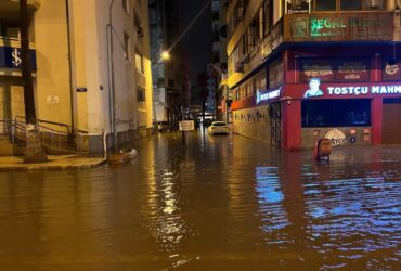 Hatay'ın İskenderun ilçesinde akşam saatlerinde etkili olan yağışla birlikte caddeler göle ...