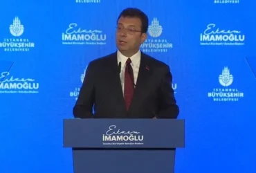 Haliç Kongre Merkezi’nde basın toplantısı düzenleyen İstanbul Büyükşehir Belediye Başkanı Ekrem