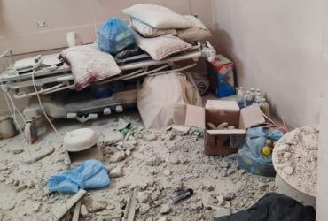 İsrail’in Gazze’nin en büyük hastanesi olan Şifa Hastanesi’nin yakınındaki bir binayı ...