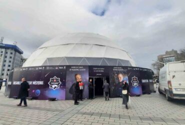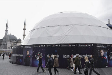 Türkiye’nin ilk uzay yolculuğunun canlı olarak izlenebilmesi için Taksim Meydanı’nda planetaryum ...