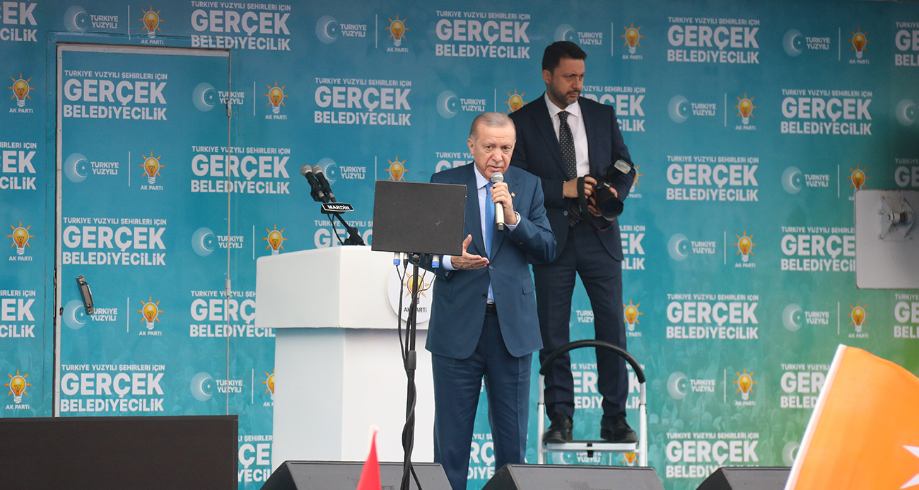 Erdoğan konuşmasının sonunda Şırnak’tan Mardin’e gelirken trafik kazası geçirerek şehit olan koruma ekibindeki polis memuruna rahmet, yaralanan 2 polis memuruna da acil şifalar diledi.